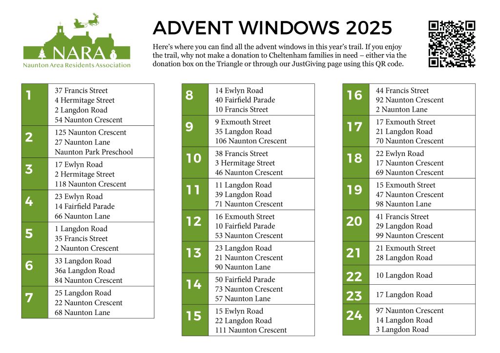 The NARA Advent Window trail is back again for 2025, with houses across the area lighting up their windows to add some festive cheer. You can see the map and list of the properties taking part below.